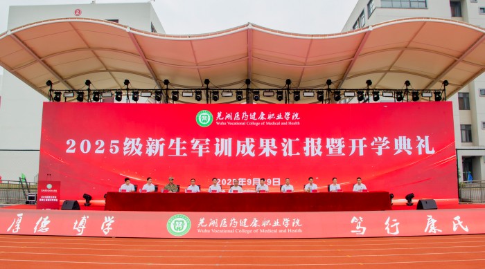 秋高气爽,旌旗飞扬。2025年9月29日上午,学院在运动场隆重举行2025级新生军训成果汇报暨开学典礼。院党委书记钱健、院长孙敬华、党委副书记王河、纪委书记陈爱国、副院长方士英和湾沚区人武部有关领导出席大会,全体承训教官、各系部和职能部门负责人参加大会,2025级全体师生参加大会。大会由王河主持。
