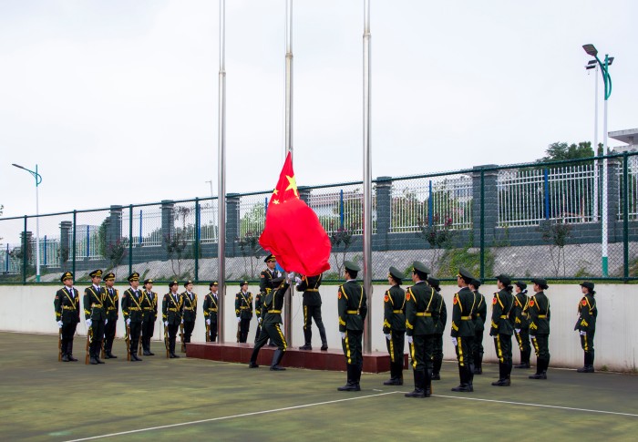 上午8时30分,在庄严的国歌声中,五星红旗冉冉升起,大会正式拉开帷幕。随后进行了军训成果汇报,倒计时方阵、分列式队伍、军体拳与匕首操方阵依次进行展示,新生齐唱《强军战歌》,他们以整齐的步伐、嘹亮的歌声和昂扬的斗志,展现出了军训期间锤炼的纪律意识和良好的精神风貌。